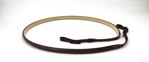 | 幅広タイプ同様、一般的なリングに付ける構造のストラップです。 リングの金属部がカメラを傷つけないよう革当てが付属します。 全長:1m20cm 幅:2p(装着時の長さ:80〜110p程度) |